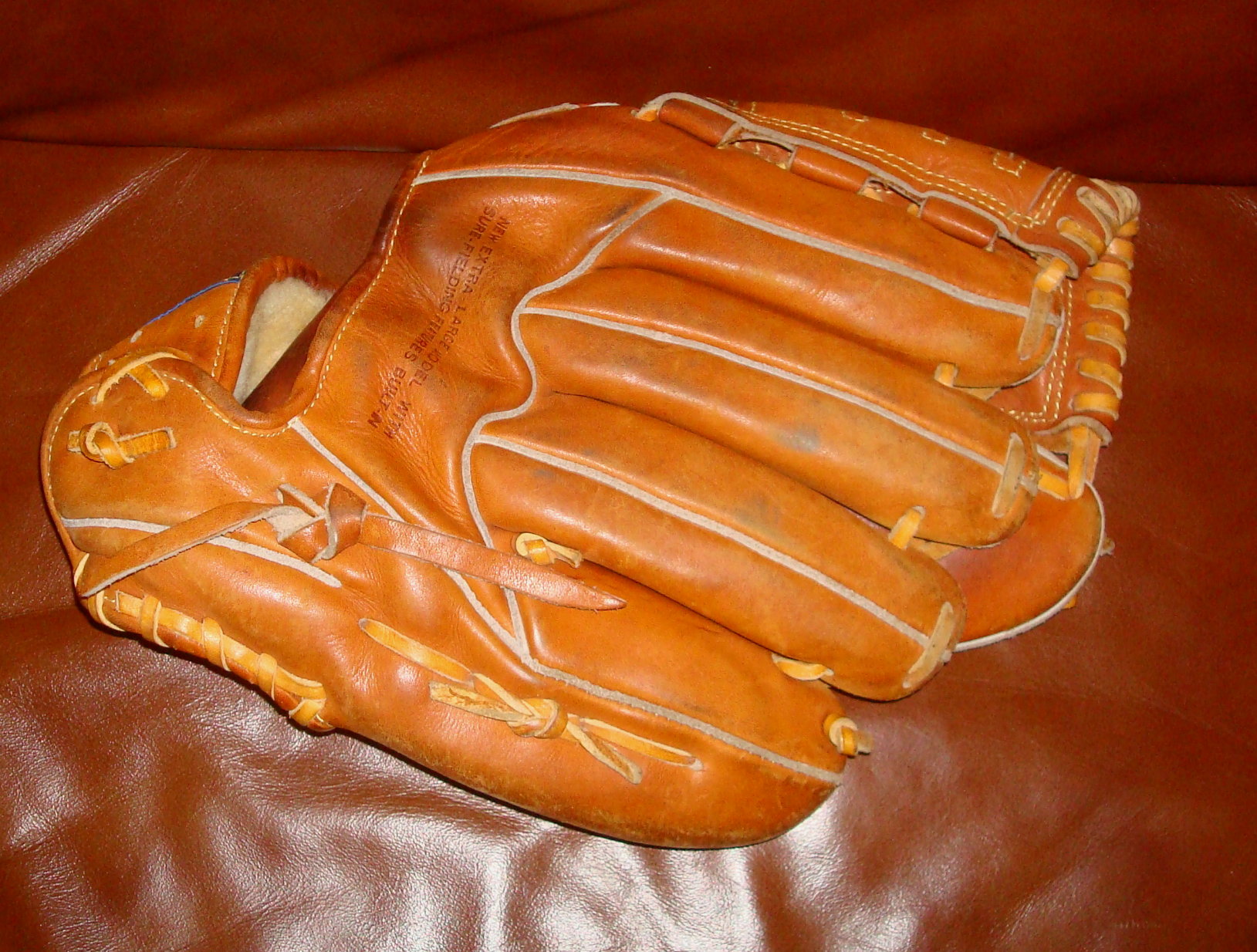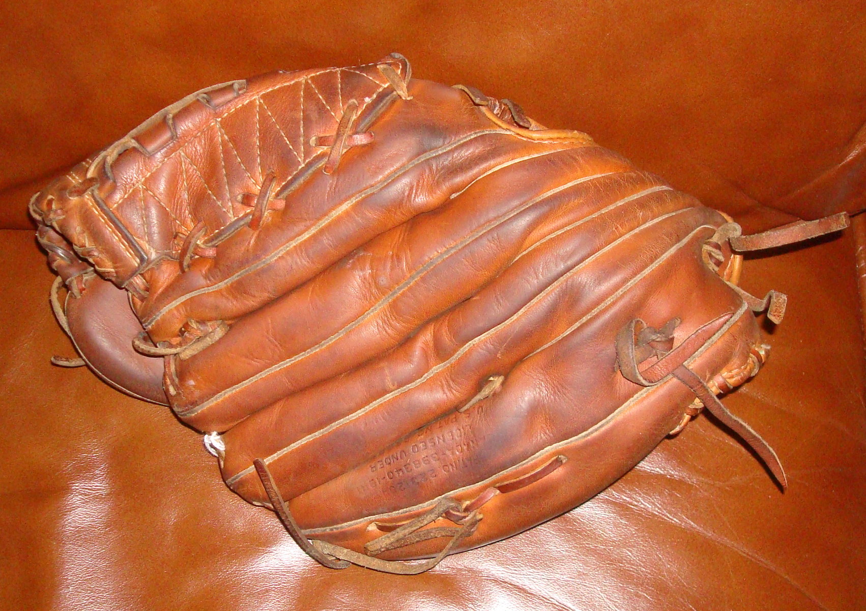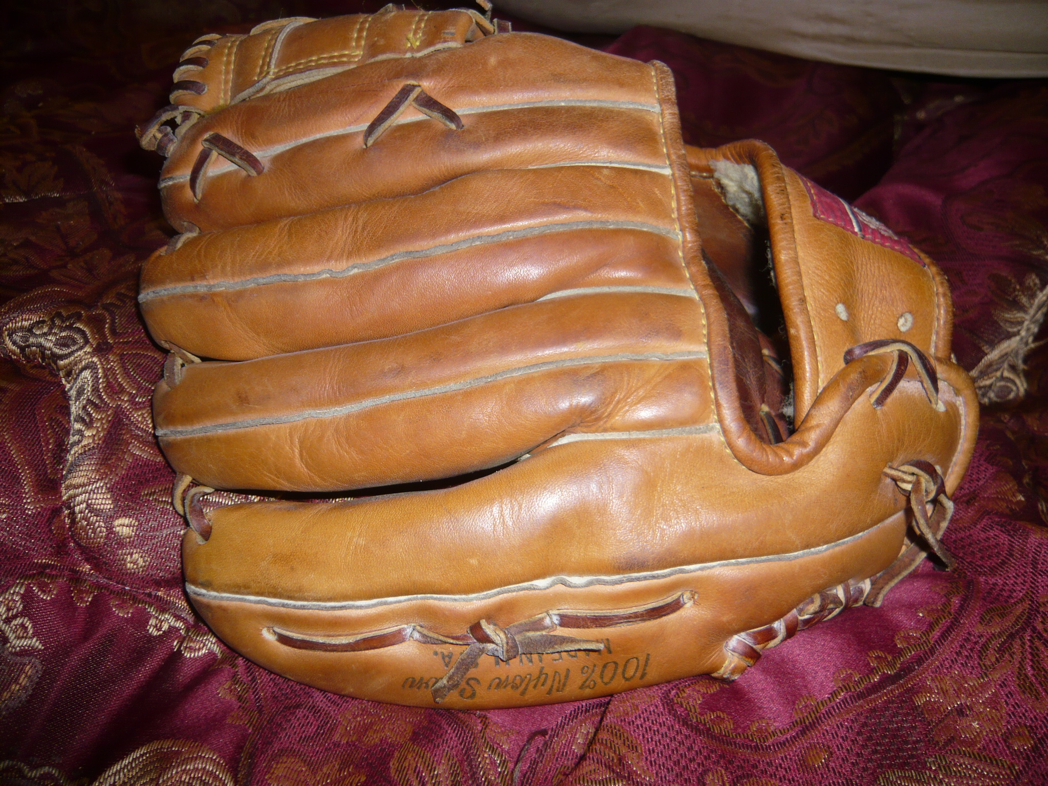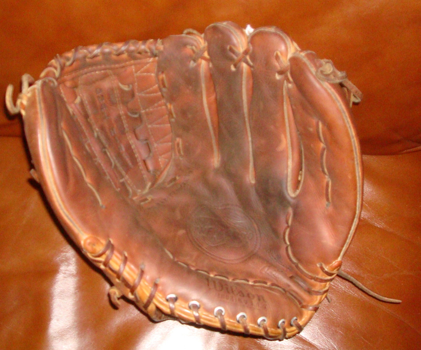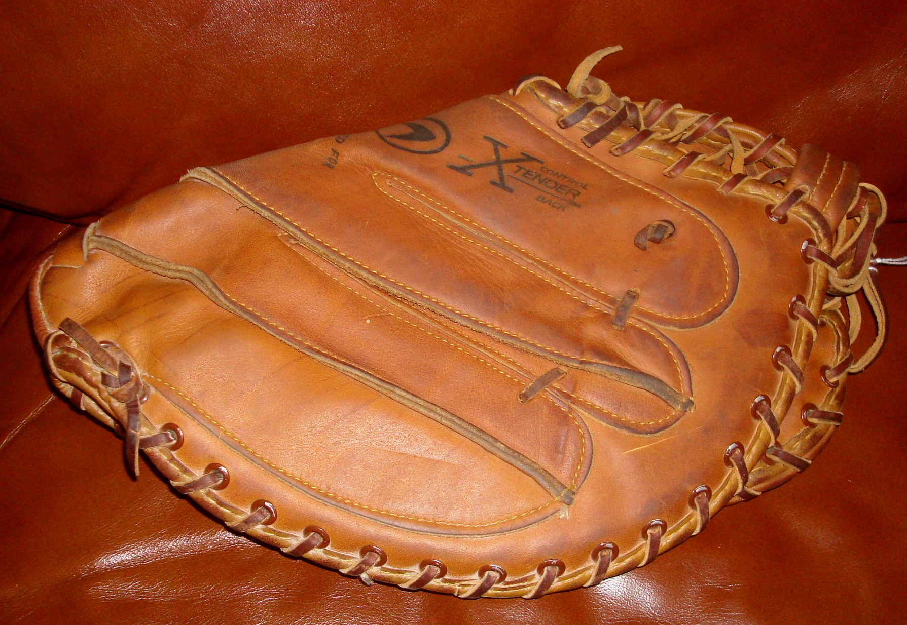 Baseman’s mitt from 70’s. Super Trapper slot-back model. Lht. Very nice player mitt too. |