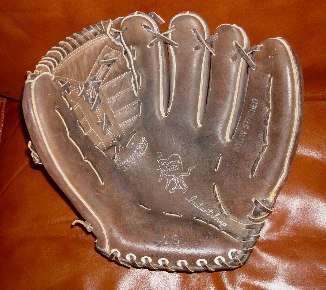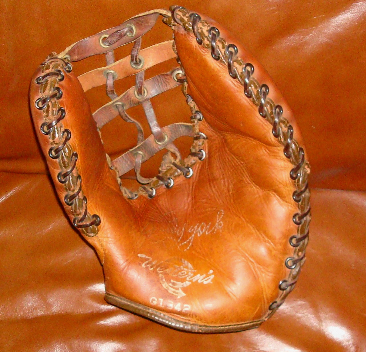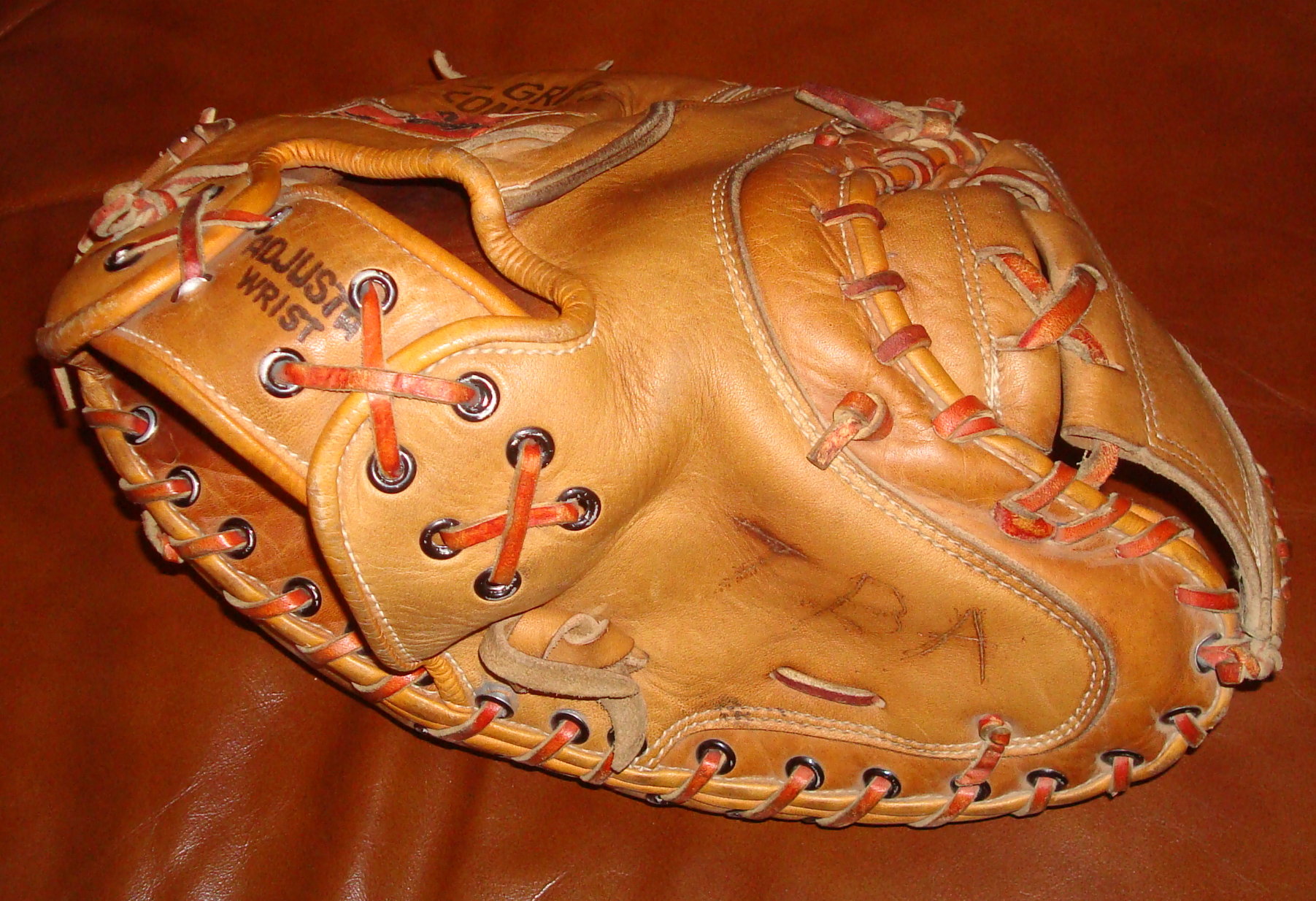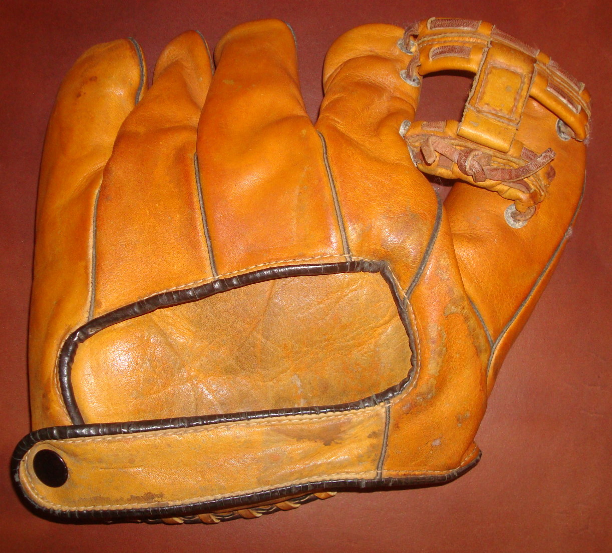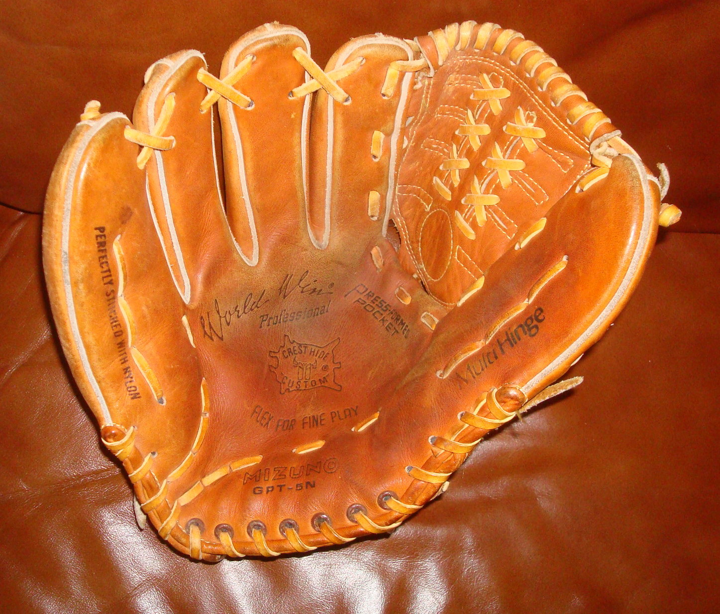 Baseman’s mitt from 70’s. Super Trapper slot-back model. Lht. Very nice player mitt too. |