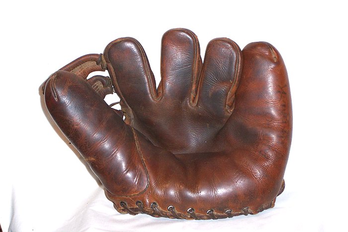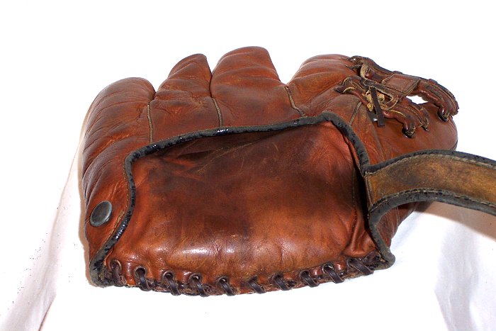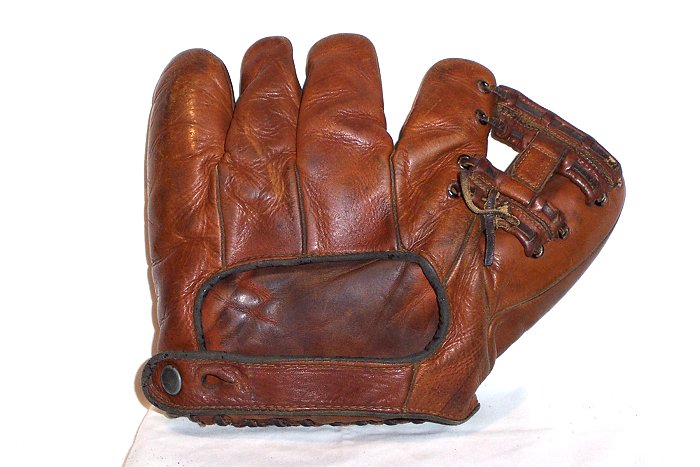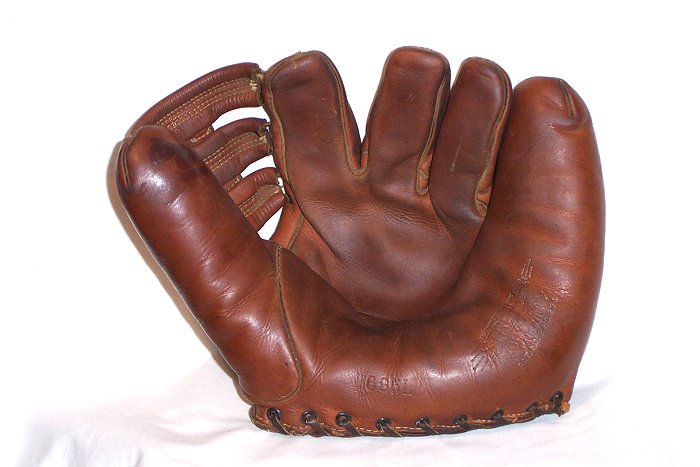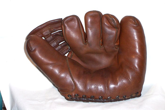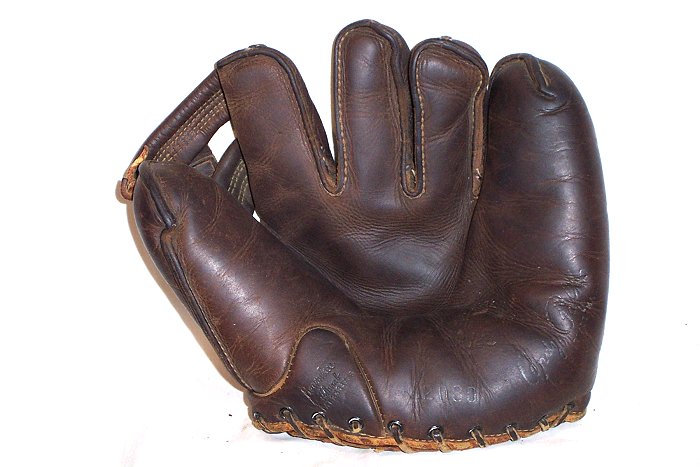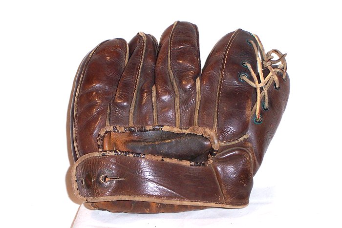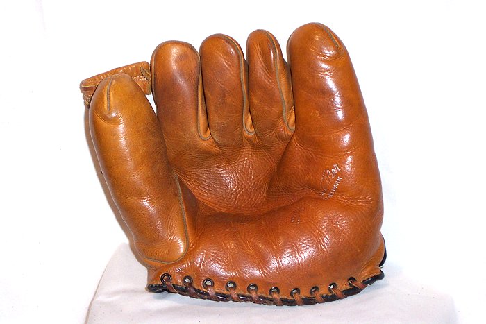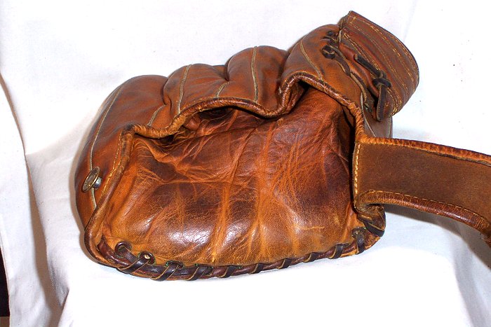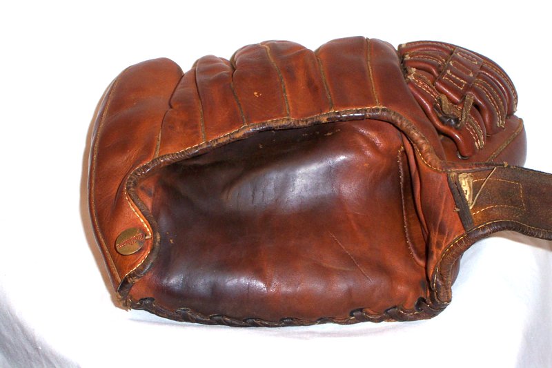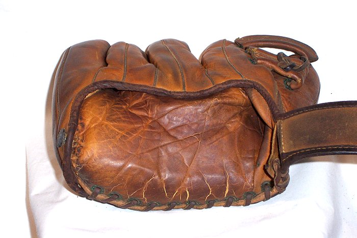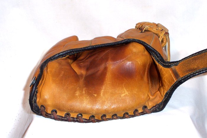 | Spalding | 10-0 (?) | None | Ex | Nice example of a thick, heavy buckleback CM from the 40s. Great pocket - verrry deep, and a great "thumper" glove. Lining feels great despite some minor cracking. | ||