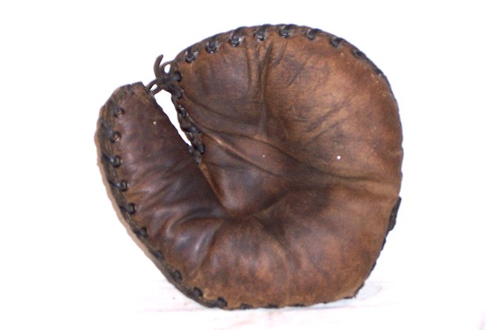 | Lowe & Campbell | (I forgot!) | Vg- | Another example of the classic "oven mitt" 1B first base mitt from the 20s/30s. Neat looks that screams 20s, with thick leather outside, but pretty rough inside. Good wall-hanger or decorative piece conversation starter. | (SOLD) | ||