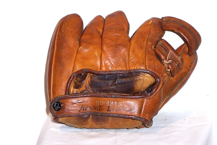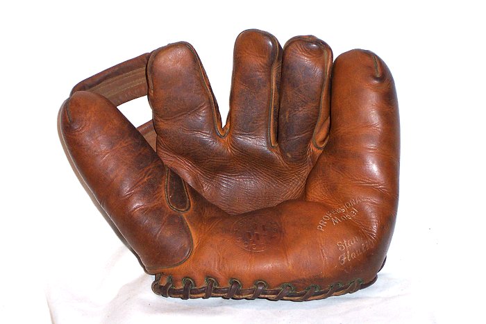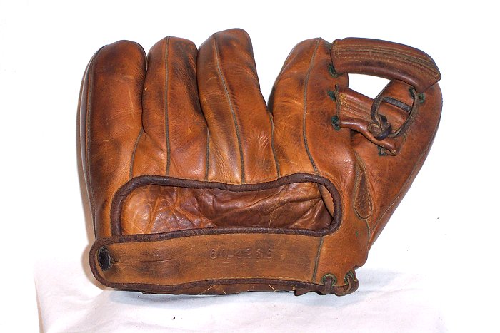| Marathon | 60-4236 | Stan Musial | Ex+ | IMO one of the coolest Musial gloves ever - the ubiquitous Marathon Musial splitfinger. This is a very soft and supple example that could be cleaned up to a pumpkin orange. Great glove! | $95 (SOLD) | |